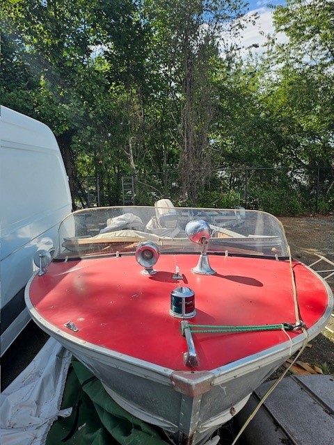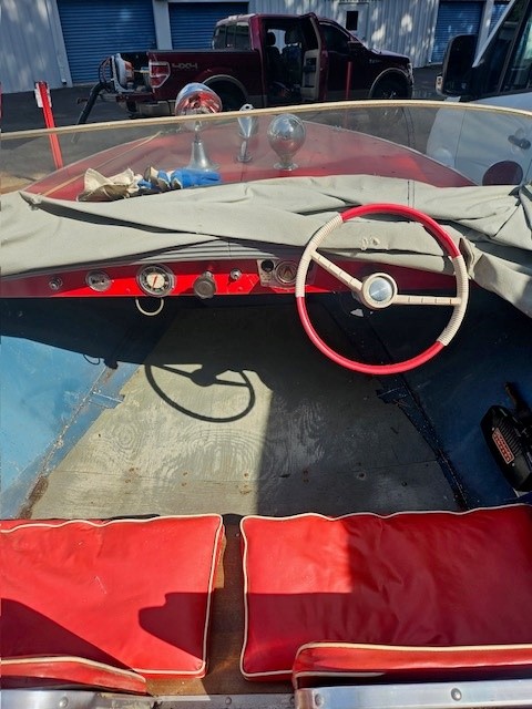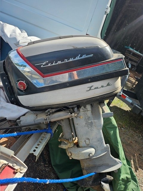 1957 McKenzie Cherokee aluminum outboard with original Evinrude Lark engine & trailer. It was running a few years ago and in storage since. Not sure if the trailer is road-worthy & I didn’t get pics of that yet. It looks to be in pretty good shape & she is asking $4500.